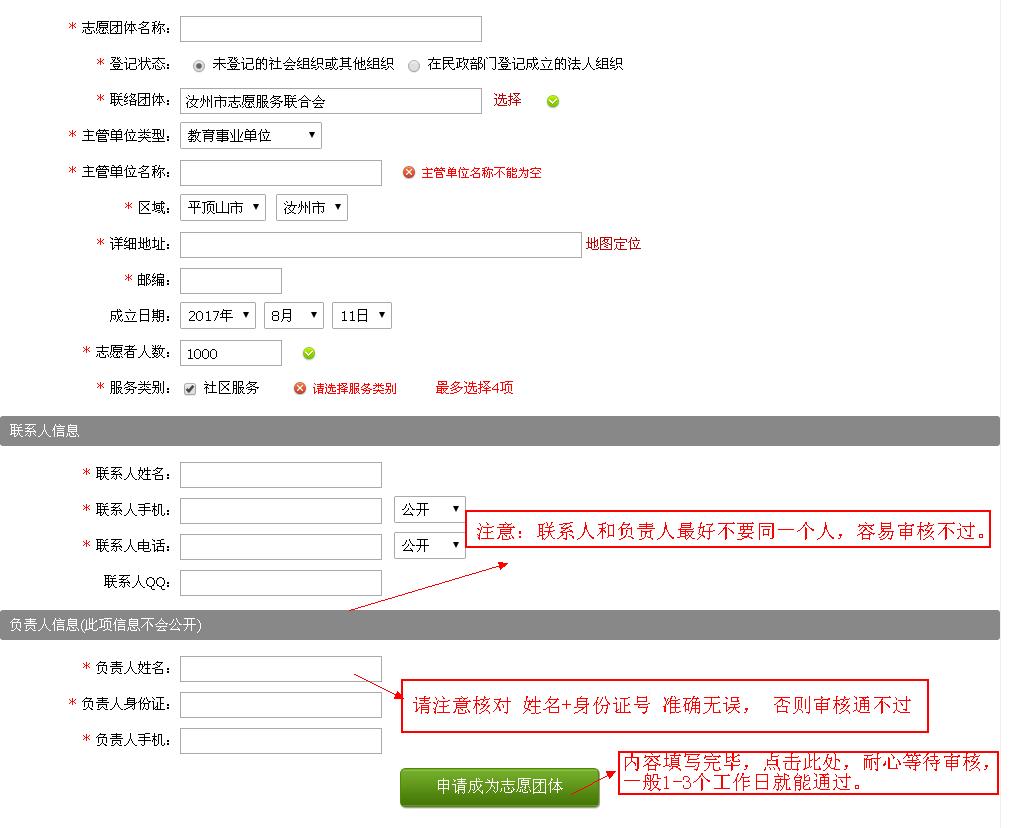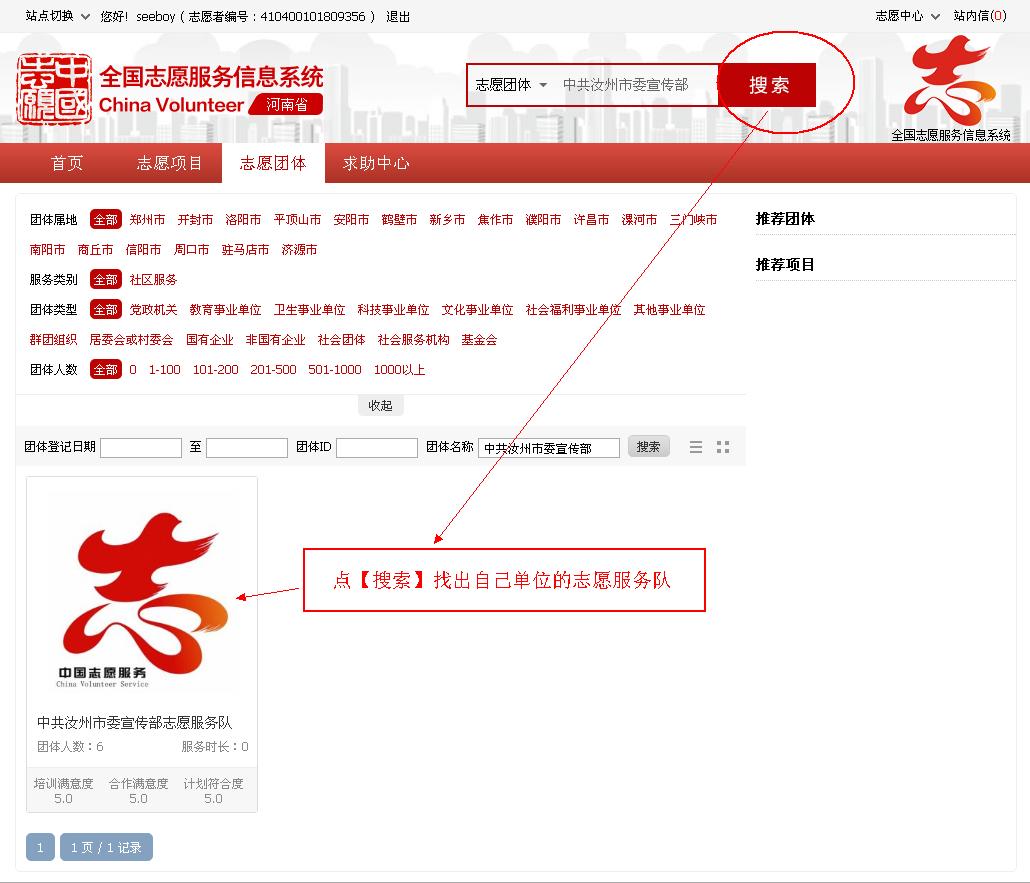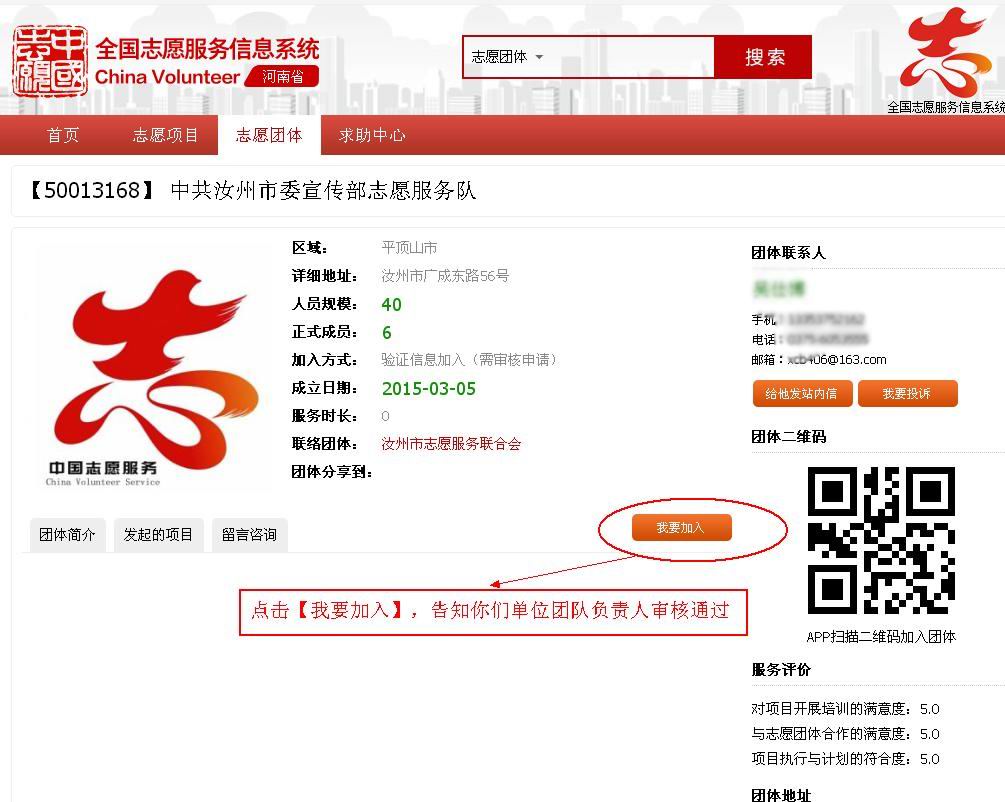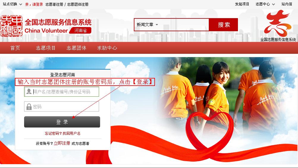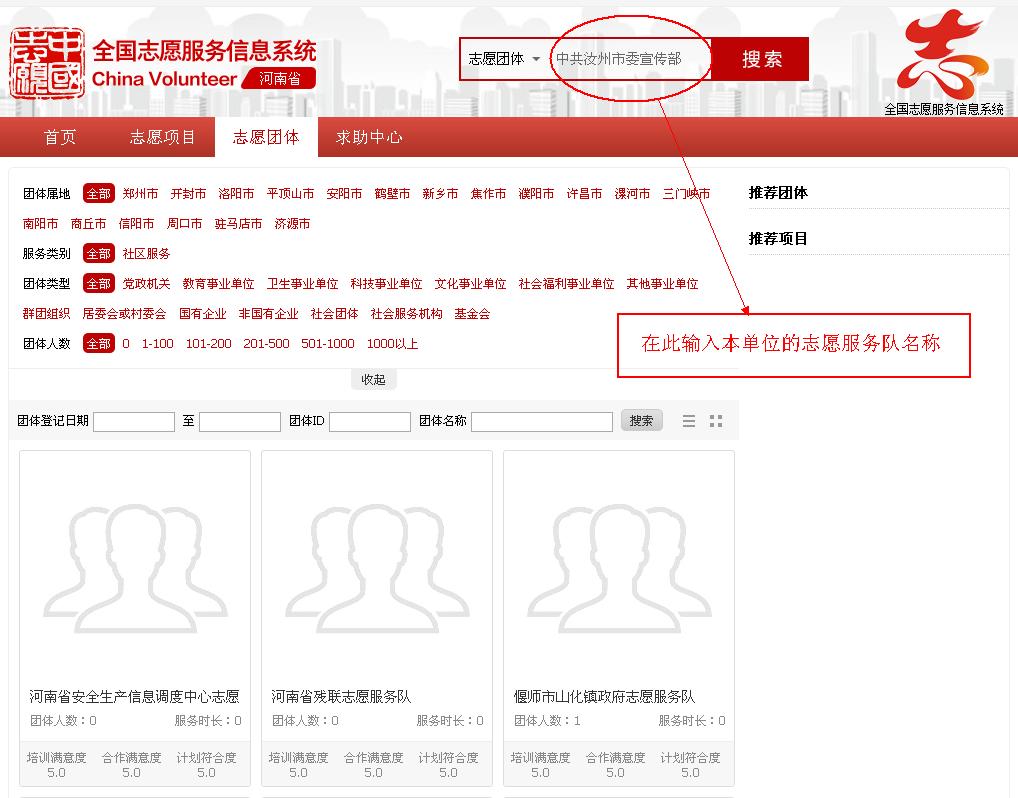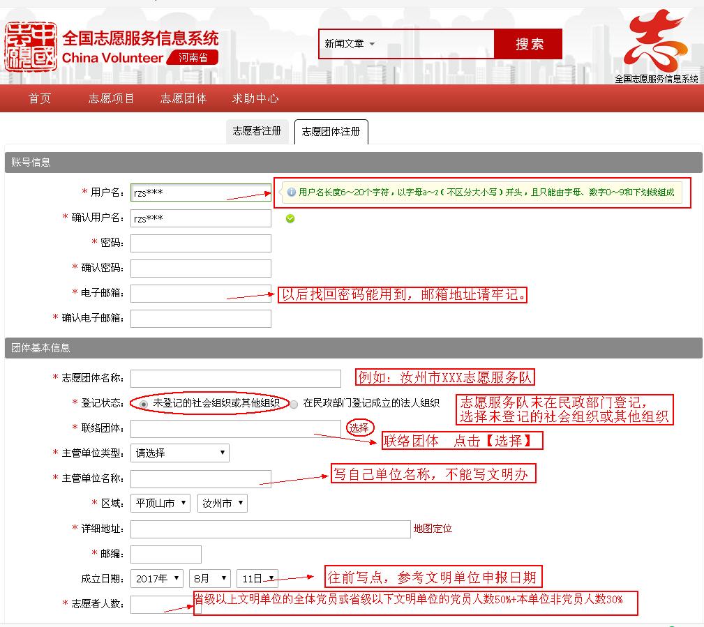 志愿团体注册1、百度搜索【志愿河南】,点击进入页面http://ha.chinavolunteer.cn/2、点击【志愿团体注册】3、按照方框提示操作4、【联络团体】选择 汝州市志愿服务联合会